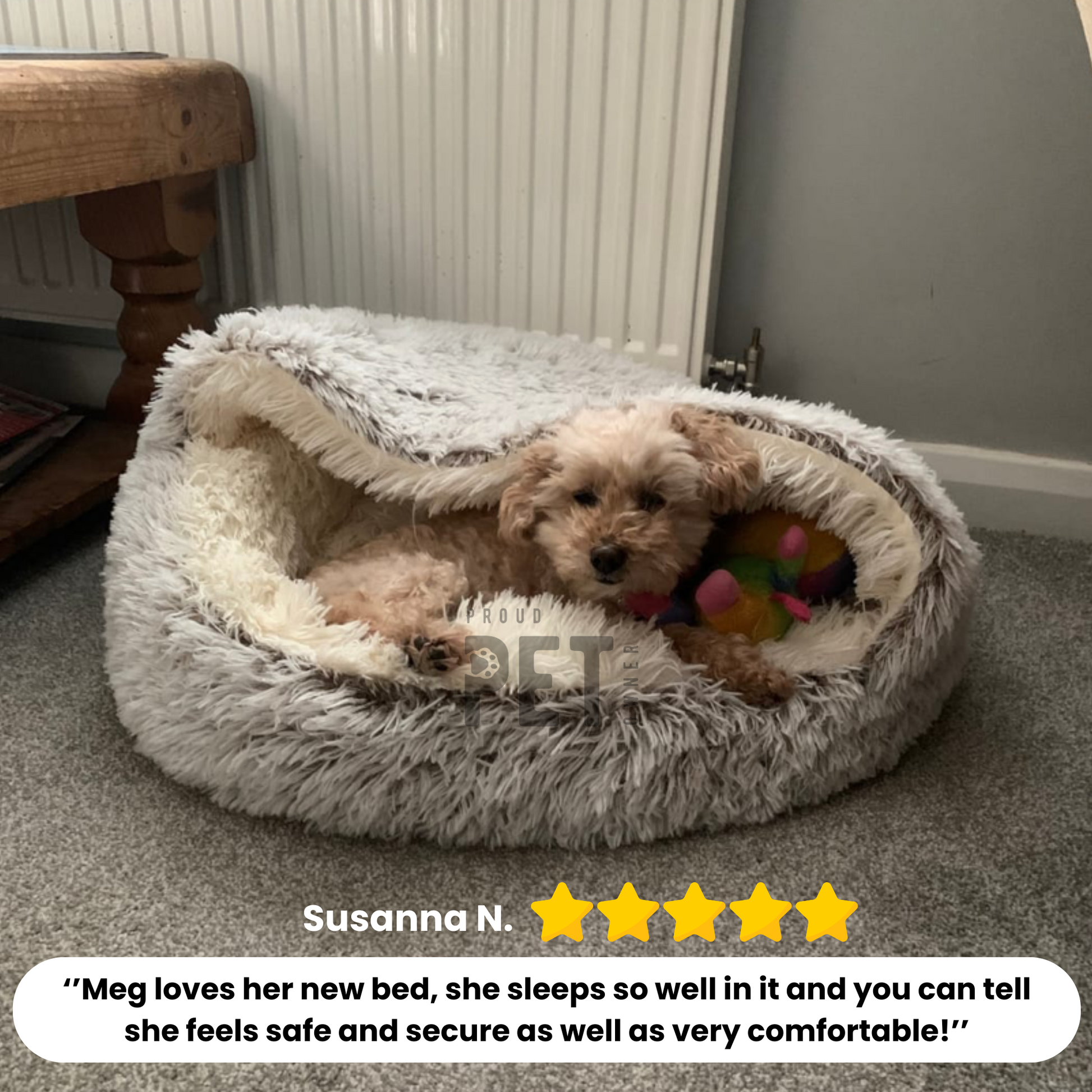 Its plush materials and cocoon-like cover establish a reassuring and secure atmosphere, effectively alleviating your dog's anxieties and apprehensions. This makes it an ideal choice for dogs experiencing separation anxiety.